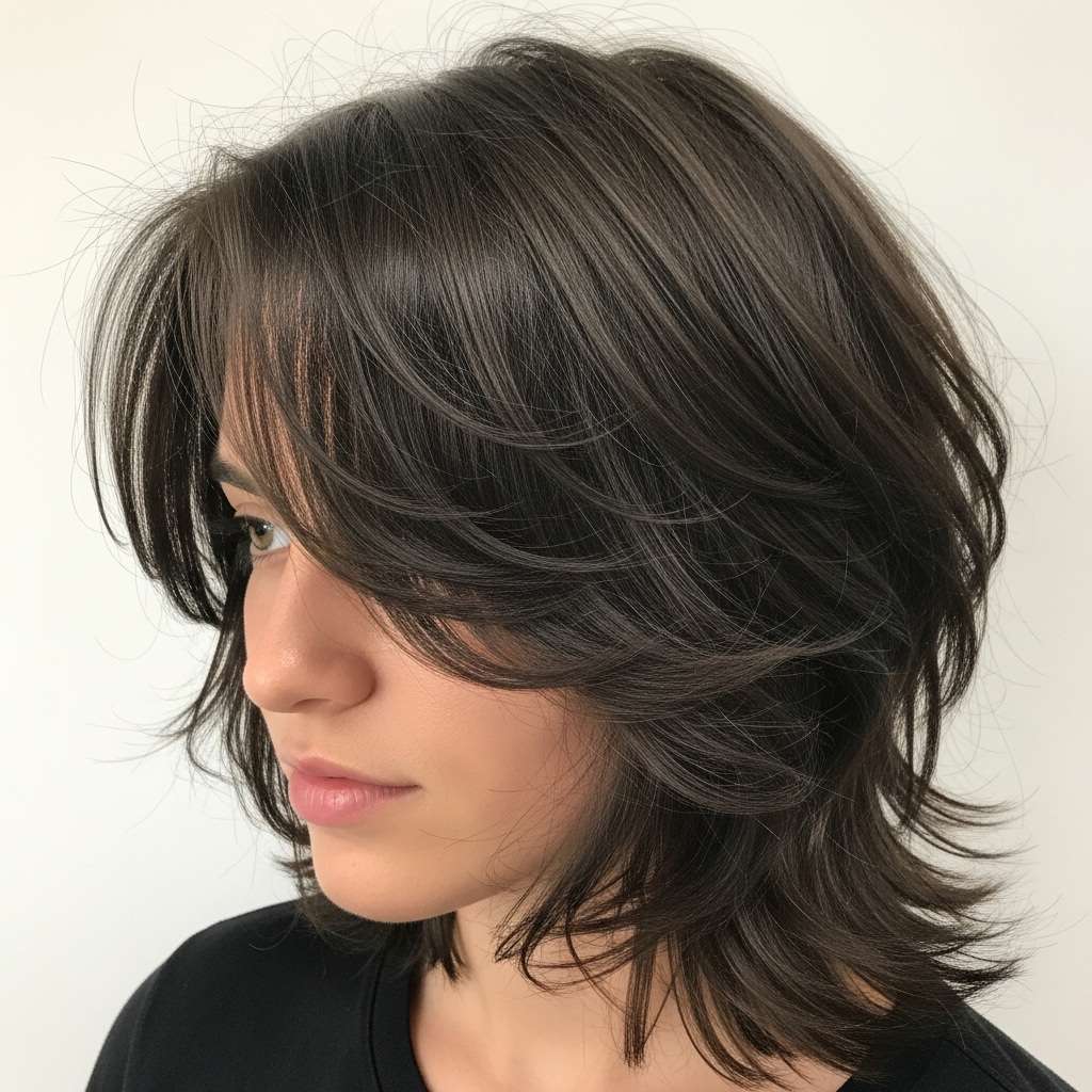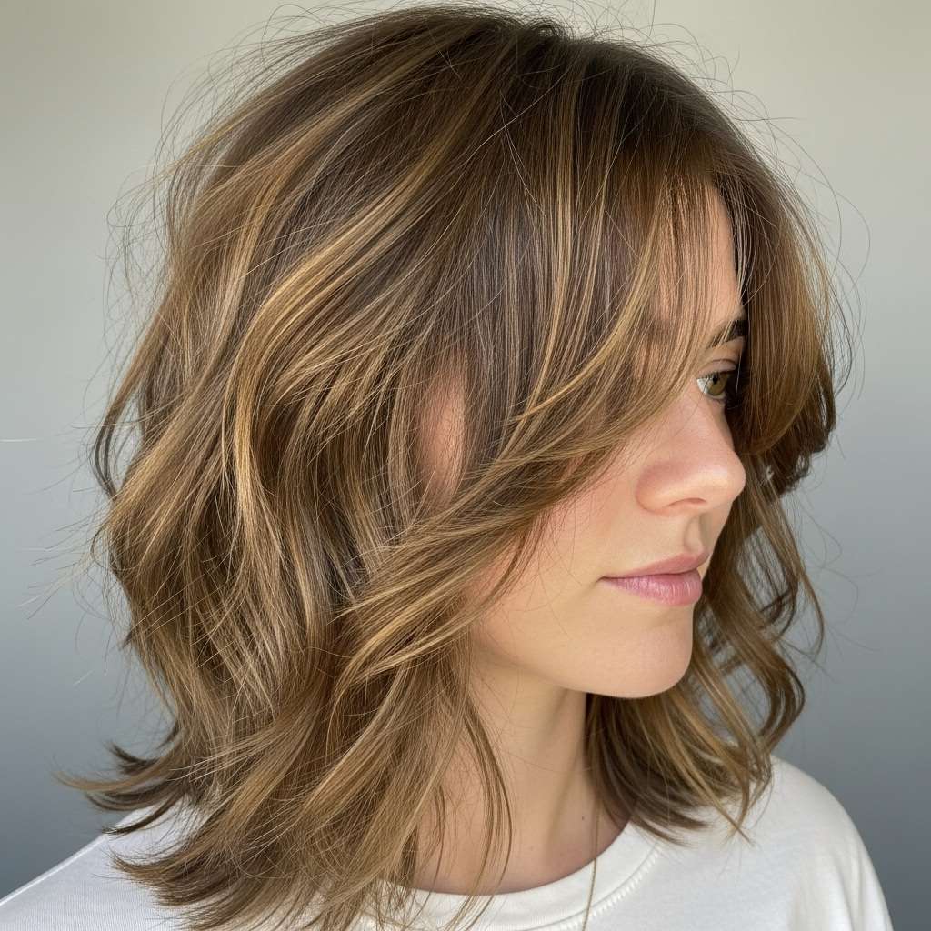 Medium-length shaggy haircuts are all about texture and effortless style. They add movement and a playful edge. Ideal for anyone wanting a chic, easy-to-maintain look