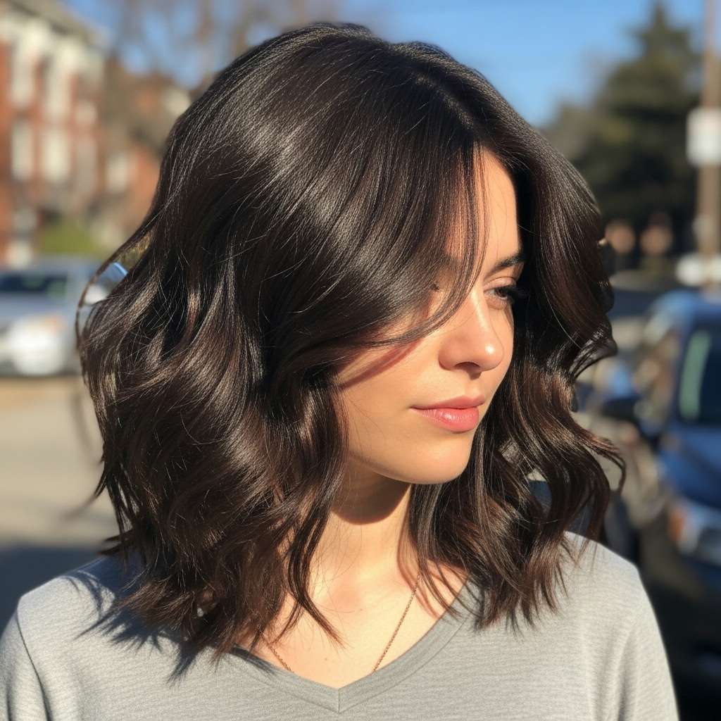 12 . Wavy Fringe: Effortless Chic for Medium Hair